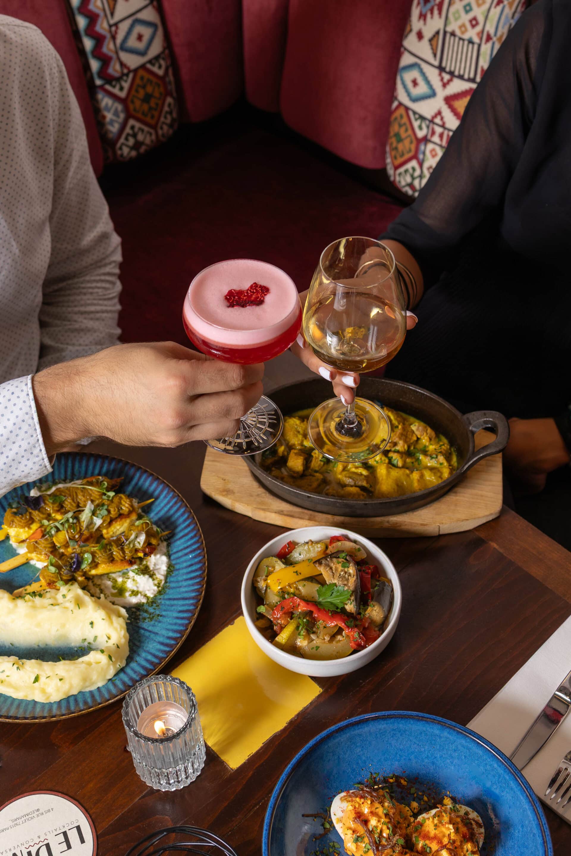 22€ Brochettes de poulet mariné, crème de tajine citron confits et olives, sauce yaourt citronnée. Servi avec écrasé de pommes de terre.