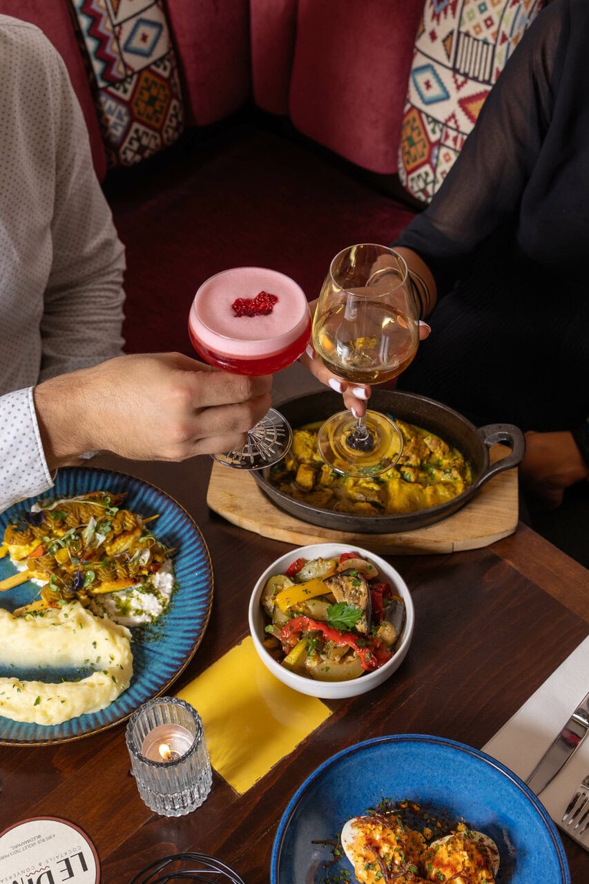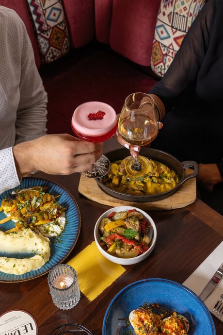 20€ Couscous parfumé, légumes mijotés (carotte, navet, courge, patate douce, courgette, pois chiches), bouillon épicé doux et oignons caramélisés tfaya.